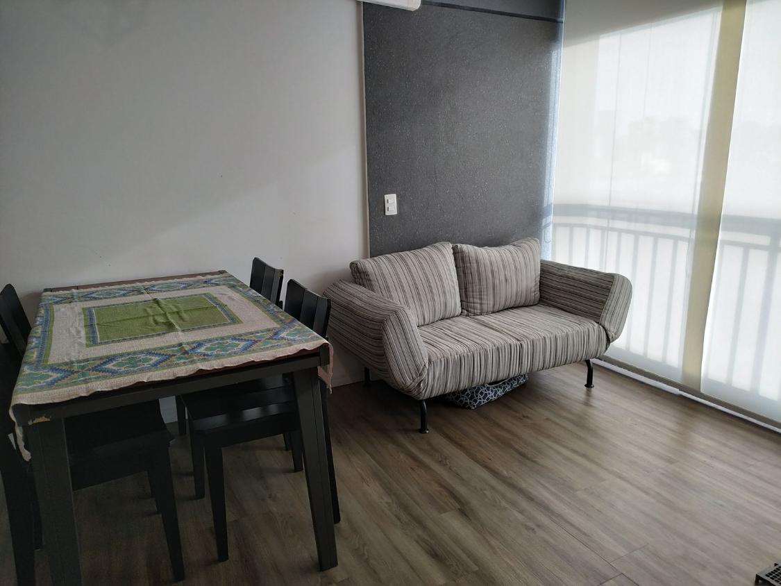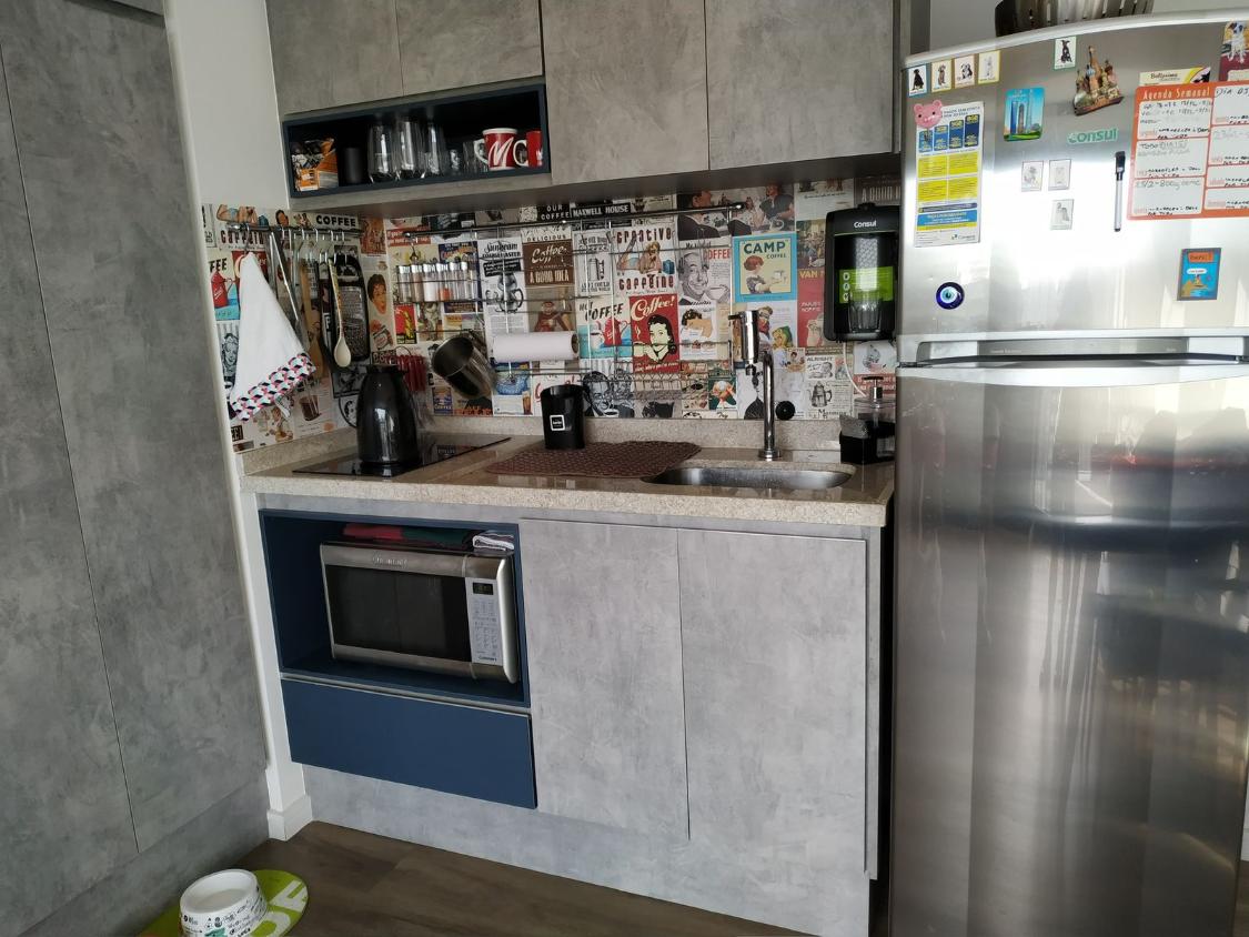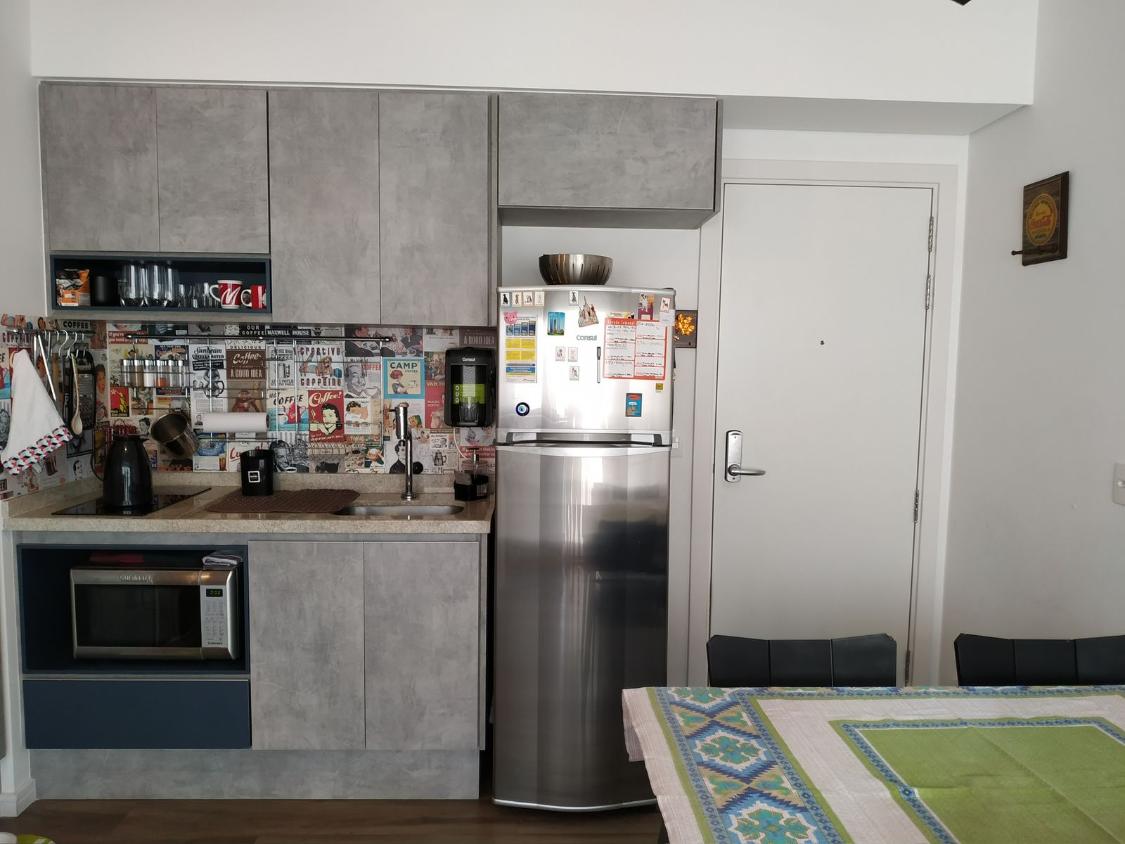 todo mobiliado com armários planejados, geladeira, cooktop, forno, geladeira, mesa, cadeiras, sofá, tv, possui tb 1 vaga de garagem fixa